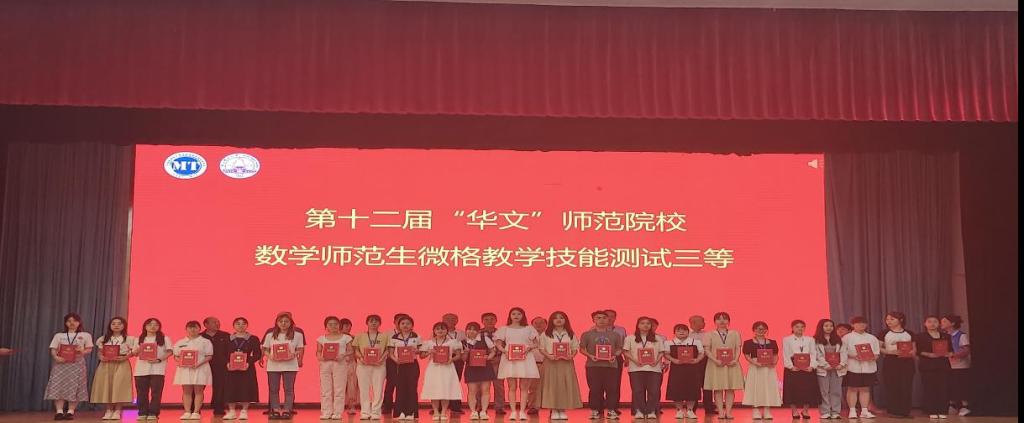 在数学微课设计能力测试赛道上,经过“华文”国赛专家组评审,学生最终获得国家二等奖2项、三等奖和优秀奖各1项。具体如下表: