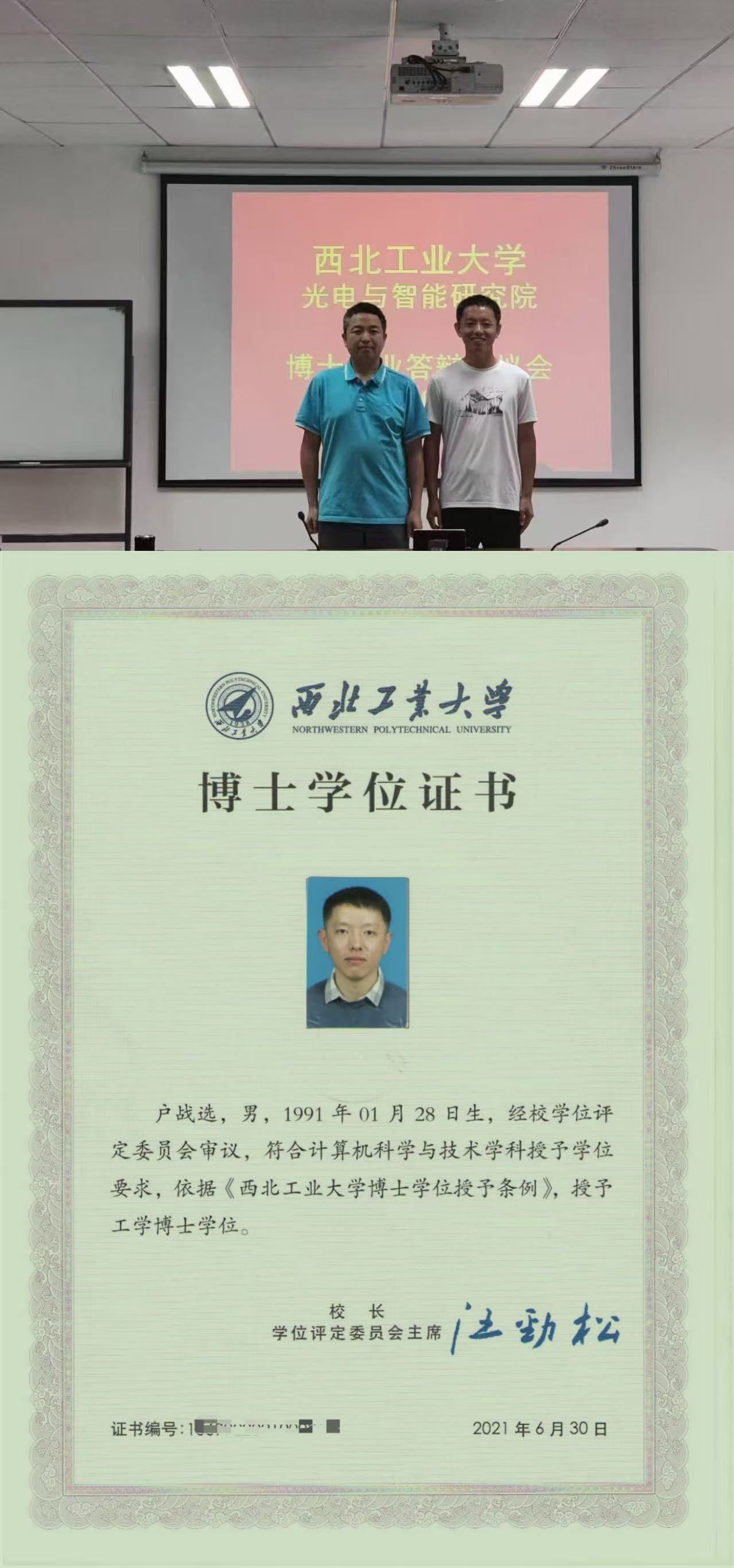 进入西北工业大学后,户战选于2017年9月通过硕博连读,进入光电智能研究院师从科技部领军人才聂飞平教授。他紧跟导师探索计算机科学与技术前沿,从文献查阅到实验设计,从数据剖析到报告撰写,全程较真钻研。2021年6月,经校学位评定委员会审核,他顺利获工学博士学位,实现从“跟学”到“自研”的蜕变。