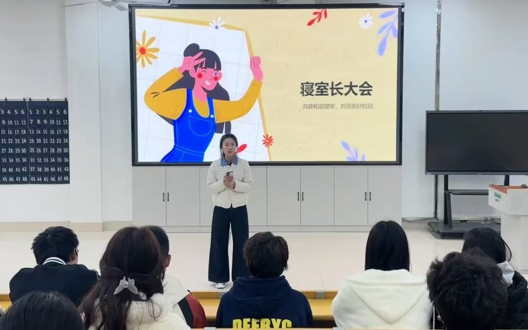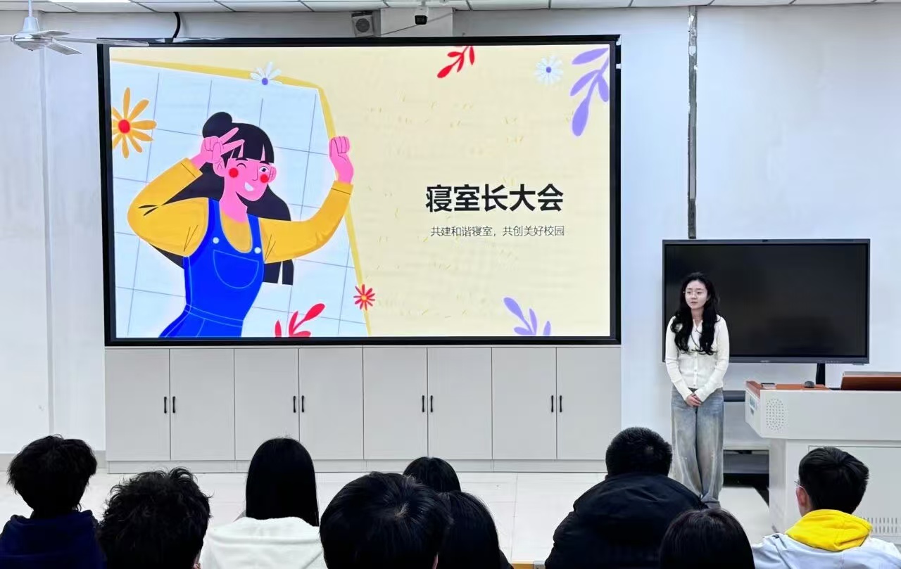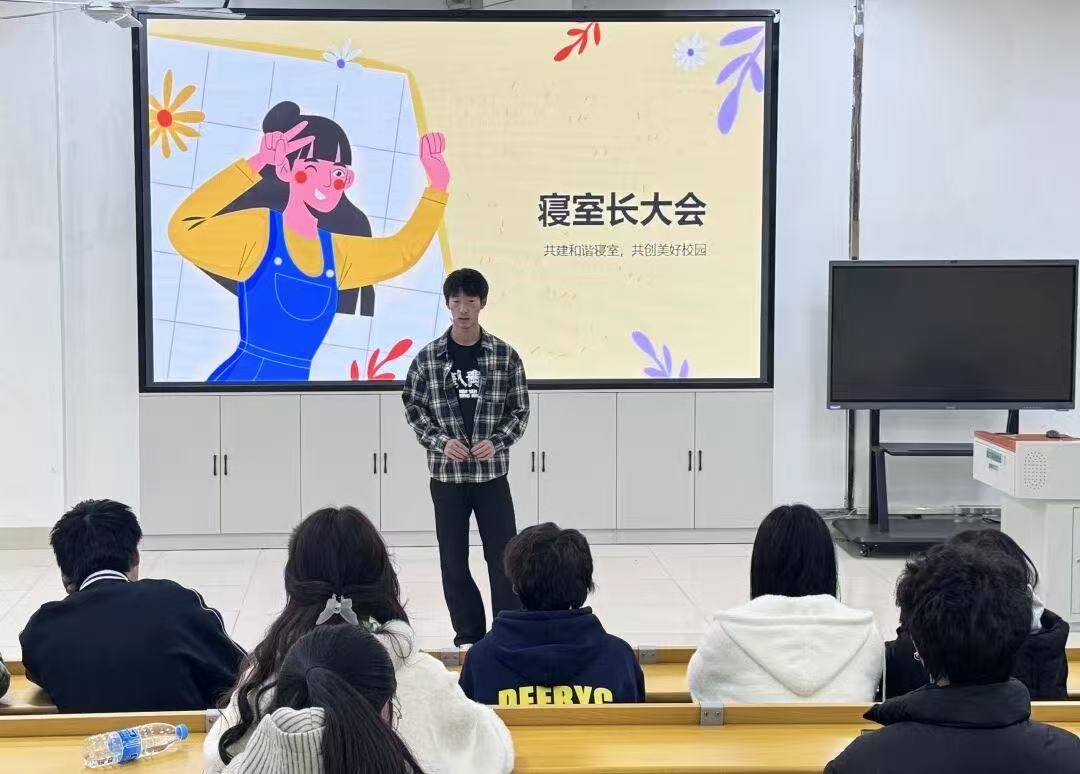 会议伊始,闫炎指出整洁的生活环境不仅关乎个人健康,更是文明素养的直接体现。随后,会议对部分学生晚归、未按时归寝等现象进行通报与提醒。接着,相关负责人重点强调用电安全,要求同学们务必做到合理使用插座、控制用电负荷、人走断电。最后,闫炎进一步强调,寝室门禁制度是保障学生安全的重要措施,全体同学应严格遵守返校时间,自觉维护寝室秩序。