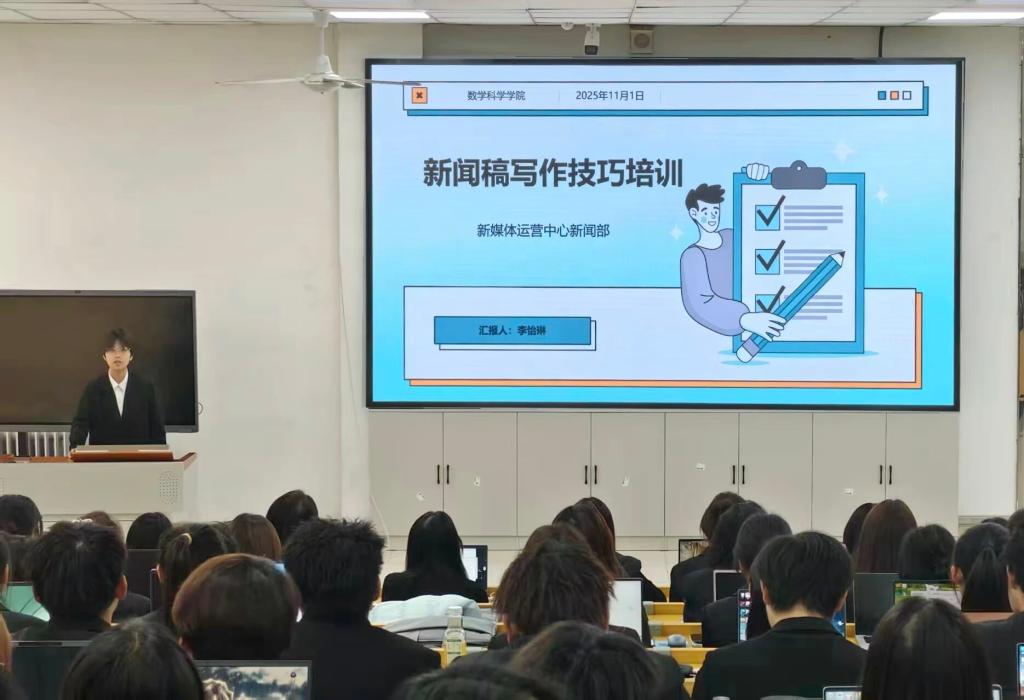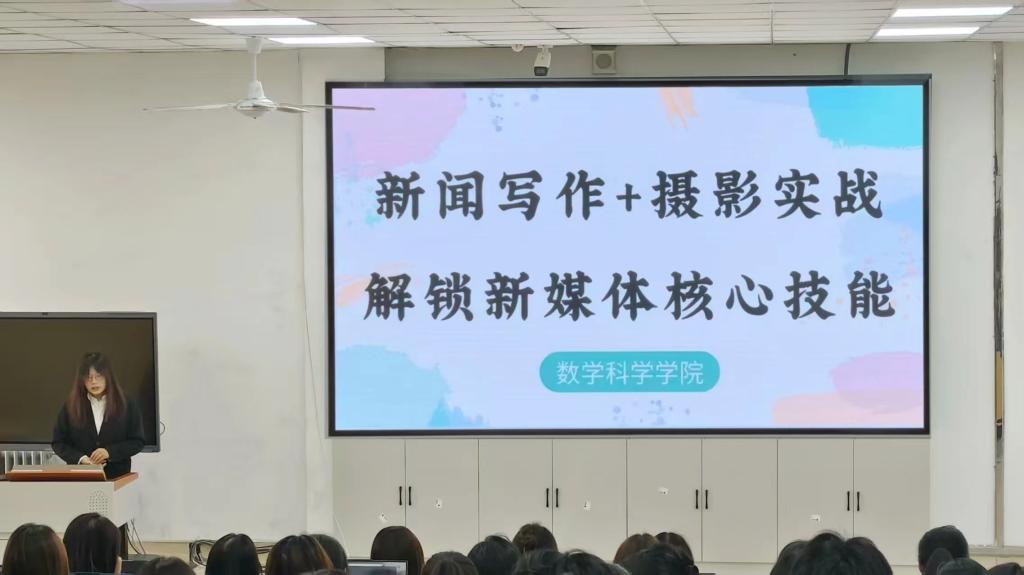 会议伊始,影音部部长鲍嘉宁结合工作中常见的拍摄构图杂乱、画面晃动等问题,通过逻辑清晰的讲解与图文并茂的PPT演示,将构图等拍摄技巧简化,让同学们快速掌握相关技能。新闻部部长李怡琳则聚焦标题拟定、写作格式、内容表达等,通过对真实新闻稿件的修改对比,直观呈现优质文案的创作逻辑与细节要求内容。两位负责人讲解条理清晰、重点突出,同学们认真记录要点、积极互动提问,会后纷纷表示,培训内容精准对接日常工作需求,能直接解决照片构图杂乱、文案表达不规范等实际问题。