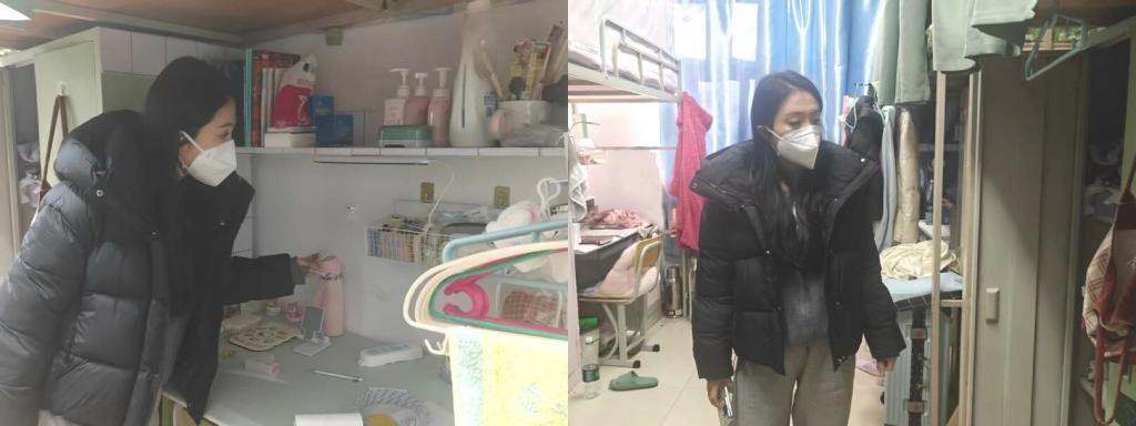 走访过程中,他们与同学们亲切交流,首先详细询问冬季生活需求,叮嘱大家近期气温骤降,务必做好防寒保暖措施,及时增添衣物,同时保持规律作息与健康饮食习惯,以良好身心状态投入学习生活。随后,围绕寝室安全防护提出要求,提醒同学们离开寝室时务必随手锁门,妥善保管个人贵重物品,增强安全防范意识。重点强调宿舍用电安全规范,明确禁止使用大功率电器,告诫同学们避免插线板超负荷运行,杜绝安全隐患。最后,叮嘱大家注重寝室环境卫生,及时清理生活垃圾,共同营造整洁舒适的居住环境,助力大家养成良好学习生活习惯。同学们纷纷表示,感谢学院的悉心关怀与温暖问候,未来将把这份关怀转化为学习奋进的动力,不负学院期望。