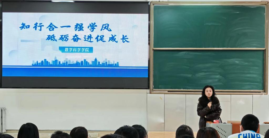 会议伊始,闫炎以“知行合一”为核心,围绕学风建设工作展开讲解。她强调,同学们要严格遵守学院各项规章制度,自觉养成勤学善思、笃行致远的良好学习习惯;同时鼓励大家主动营造比学赶超、互帮互助的班级学习氛围,从日常学习生活的点滴中夯实学风建设根基。此外,闫炎还引导同学们树立自主学习、深度学习的意识,涵养优良学风,坚守知行合一理念,在勤学笃行中锤炼专业本领。
