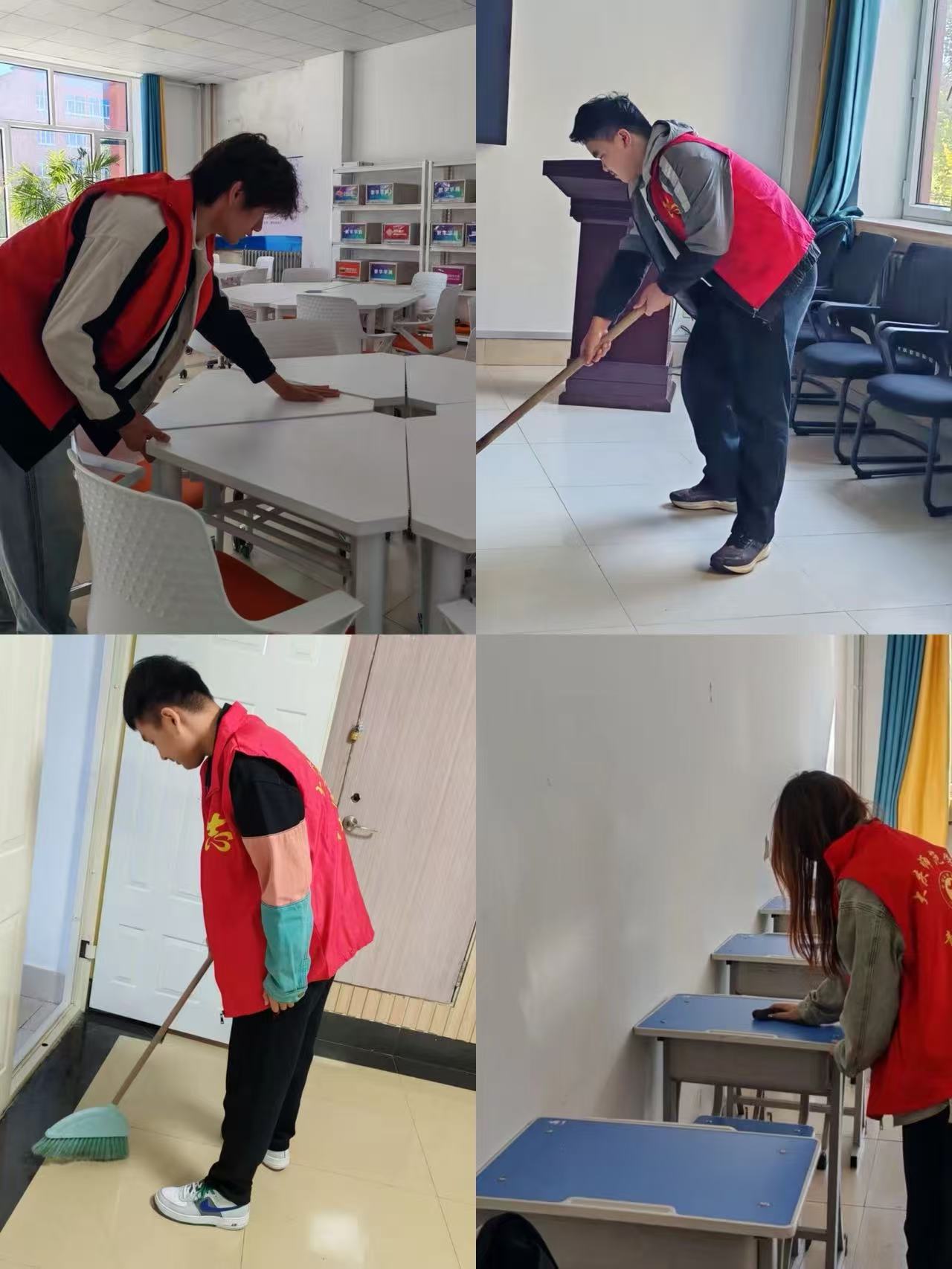 活动前期,志愿者协会提前规划,根据教学楼分布与教室数量,将志愿者合理分组,明确每组负责区域与清扫任务,确保活动高效有序推进。活动当天,志愿者携扫帚、抹布等工具准时到位,分工清扫地面死角、擦拭桌椅黑板、整理杂物。虽遇污渍难除等问题,但大家始终热情,践行志愿精神。经数小时努力,几间教室焕新,既优化师生学习环境,也为校庆添上“志愿红”。