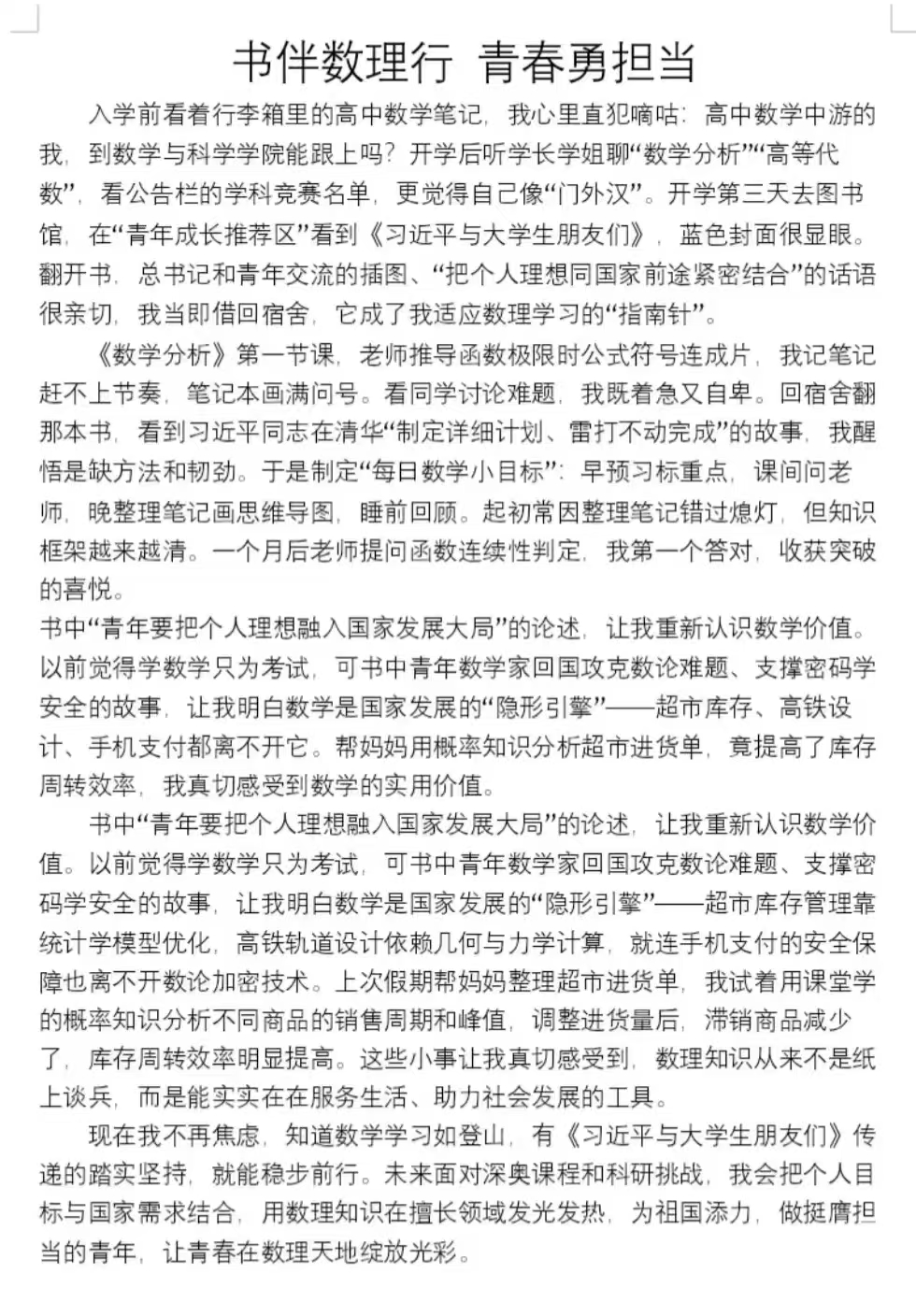 此次征文活动的顺利开展,切实深化了数科学子对习近平文化思想的理解,进一步引导同学们树立正确价值观。未来,学院将持续开展此类活动,帮助同学们找准奋斗方向、锚定人生航向,推动习近平文化思想在校园落地生根。(撰稿:林鑫垚 审核:夏丽娜 编辑:闫炎)