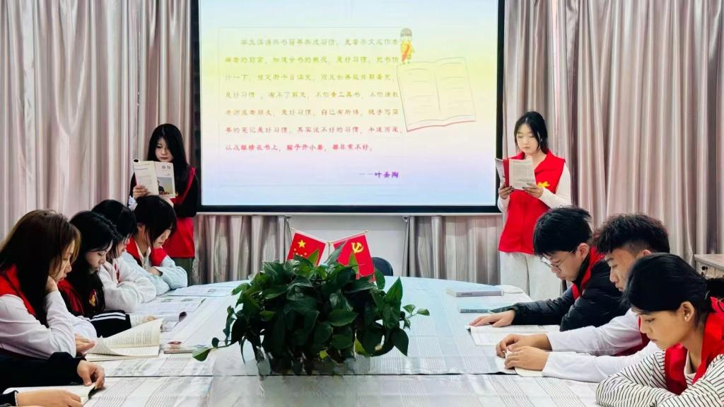 活动伊始,工作人员与志愿者共同诵读经典理论著作,聚焦青年担当相关内容开展集体共读,志愿者代表分享理论学习方法与心得。随后,在学习交流环节中,志愿者结合读书感悟,围绕“如何将思想学习转化为担当行动”展开热烈讨论,畅谈自身感悟与实践规划。活动尾声,全体人员集体观看主题视频,视频生动展现志愿者投身服务、奋勇担当的昂扬风貌。同学们表示,在与社区的互动实践中,他们更加深刻地理解了“担当”的内涵,也更加坚定了持续投身志愿服务的决心。
