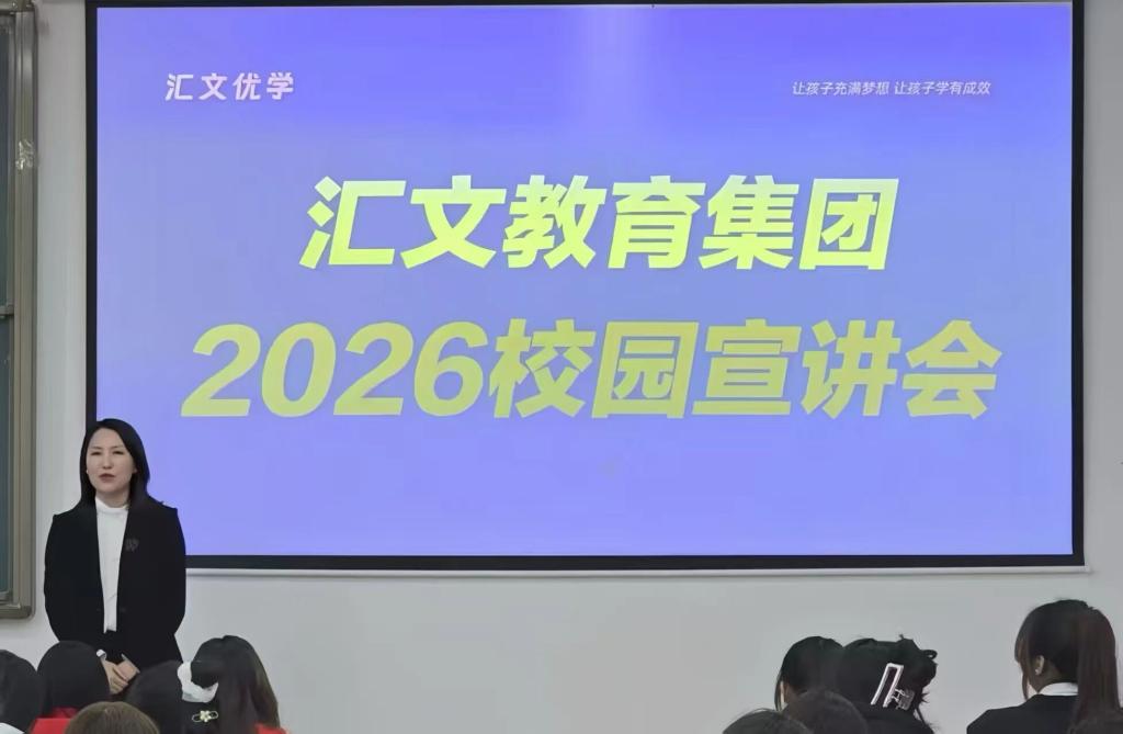 宣讲会现场气氛热烈,汇文教育集团创始人率先登台宣讲,她结合自身创业历程与职业成长故事,鼓励在场同学积极投身教育事业,在教书育人的岗位上实现人生价值。随后,集团负责人详细介绍集团的发展背景、办学历程、核心特色及未来规划,并通过生动案例与图文展示,直观呈现教育理念、师资建设与课程体系等内容,助力同学们深化对机构的认知。参会同学表示,此次宣讲不仅清晰了解教育行业的招聘标准和人才需求趋势,为个人职业规划提供了宝贵参考,更能帮助他们对照企业岗位要求,客观审视自身的优势与不足,从而提升就业竞争力。
