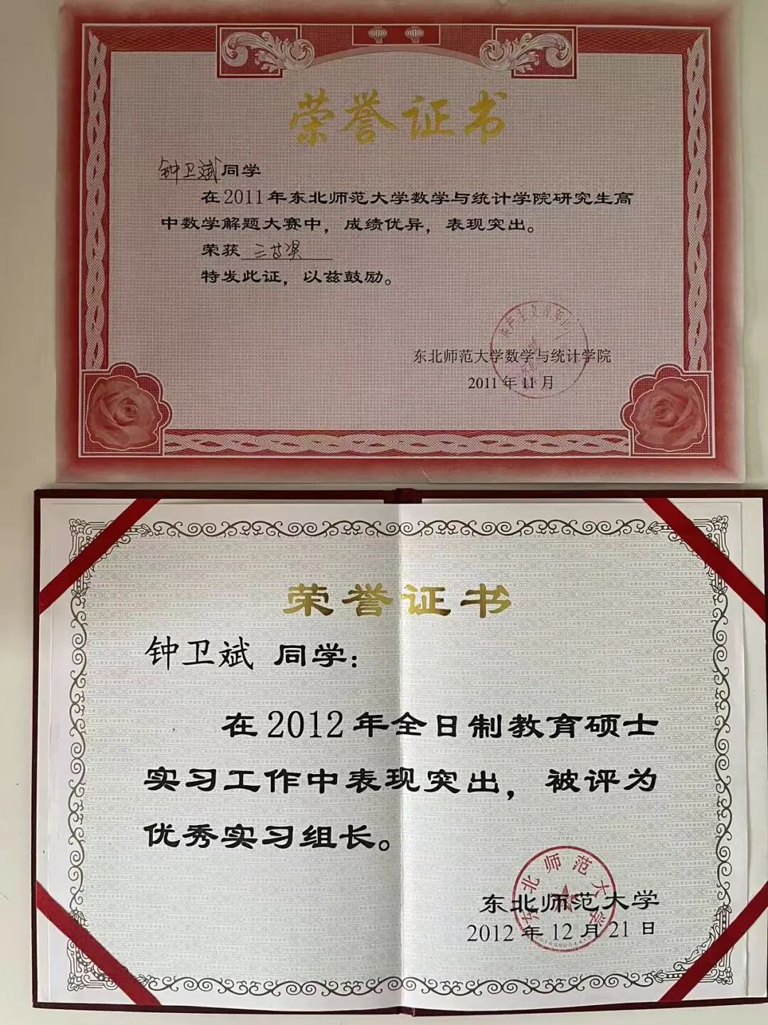 2011年,他考入东北师范大学成为学科教学(数学)研究生,继续精进专业。读研期间,他在解题大赛中获三等奖,获评“优秀实习组长”,更一举拿下“国家奖学金”,以全优表现为学业深造再添荣光。